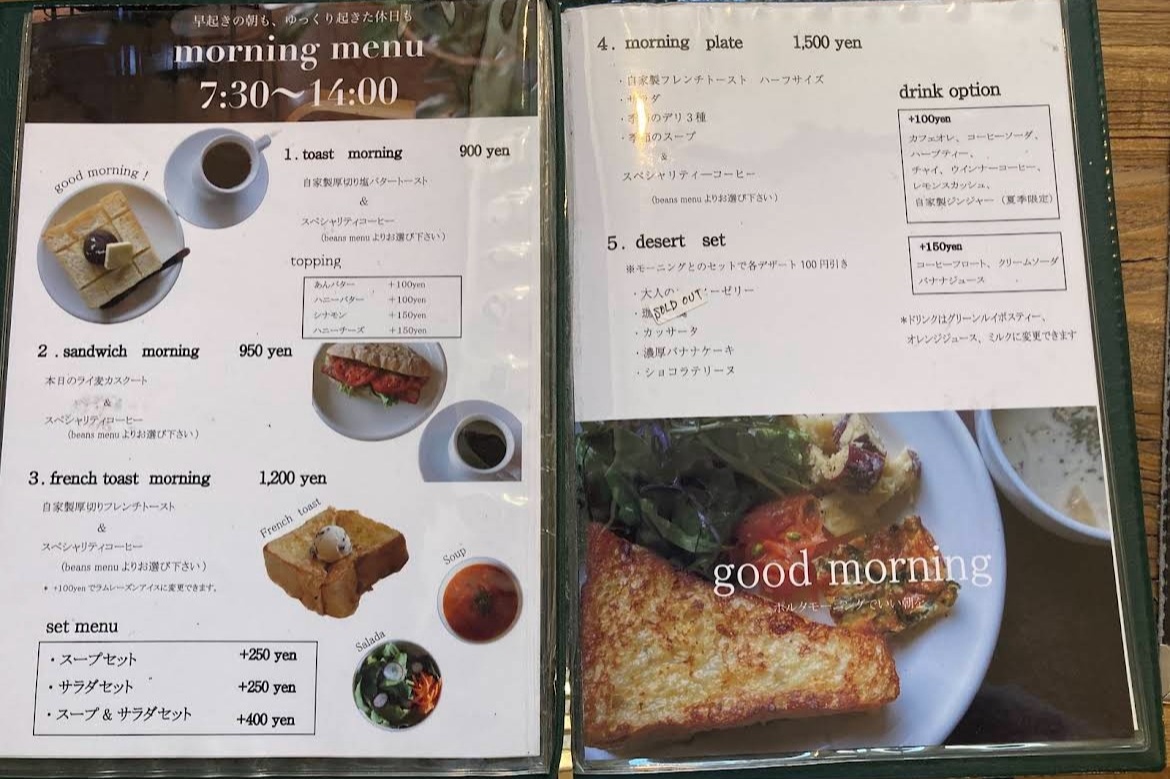 モーニングはなんと7:30〜14:00まで提供。朝早く行動したい方も、チェックアウト後にのんびりしたい方も、ご自身のペースで立ち寄れます。
