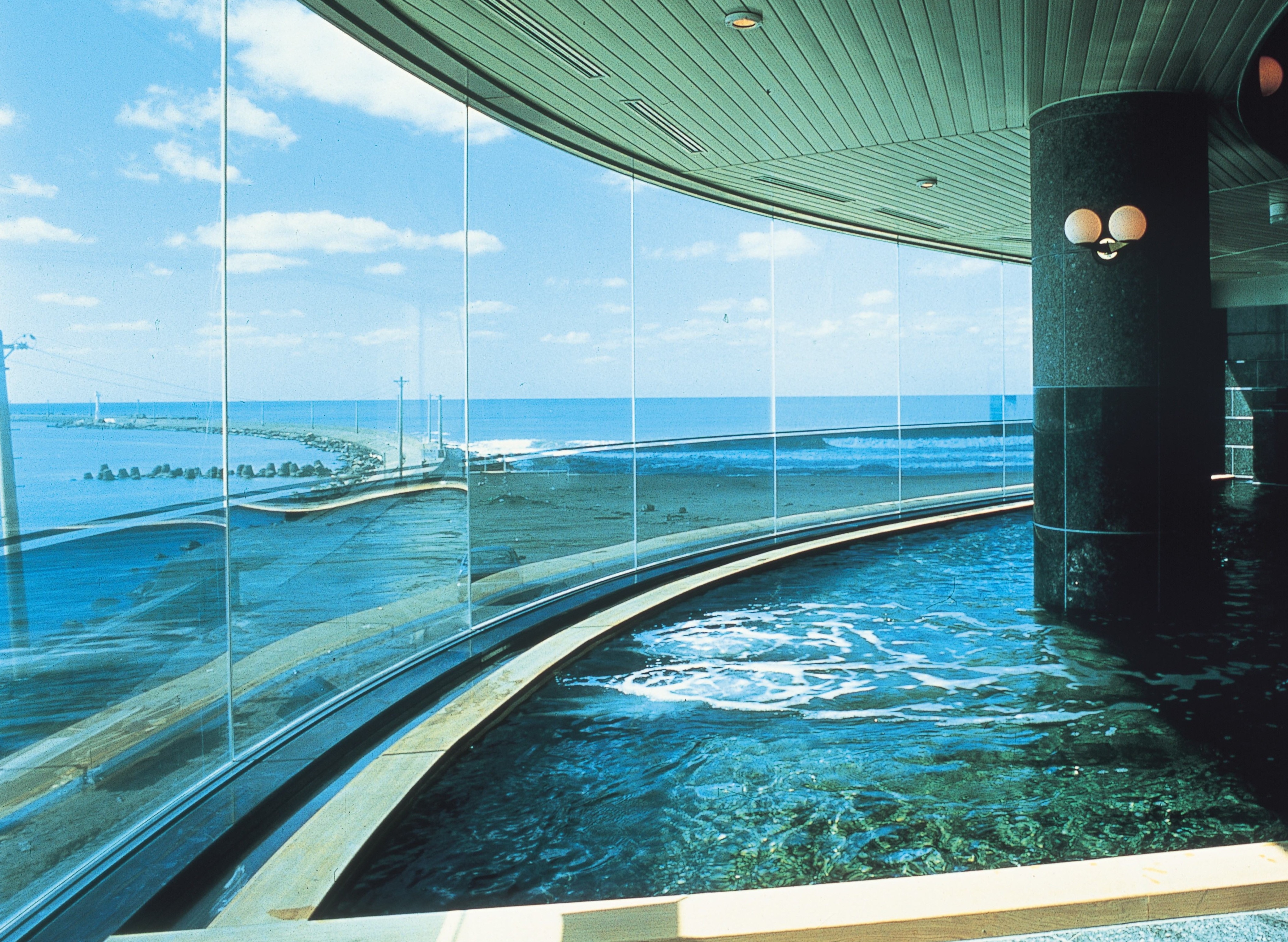 三国サンセットビーチの南端に佇む日帰り温泉「東尋坊三国温泉ゆあぽ~と」では、