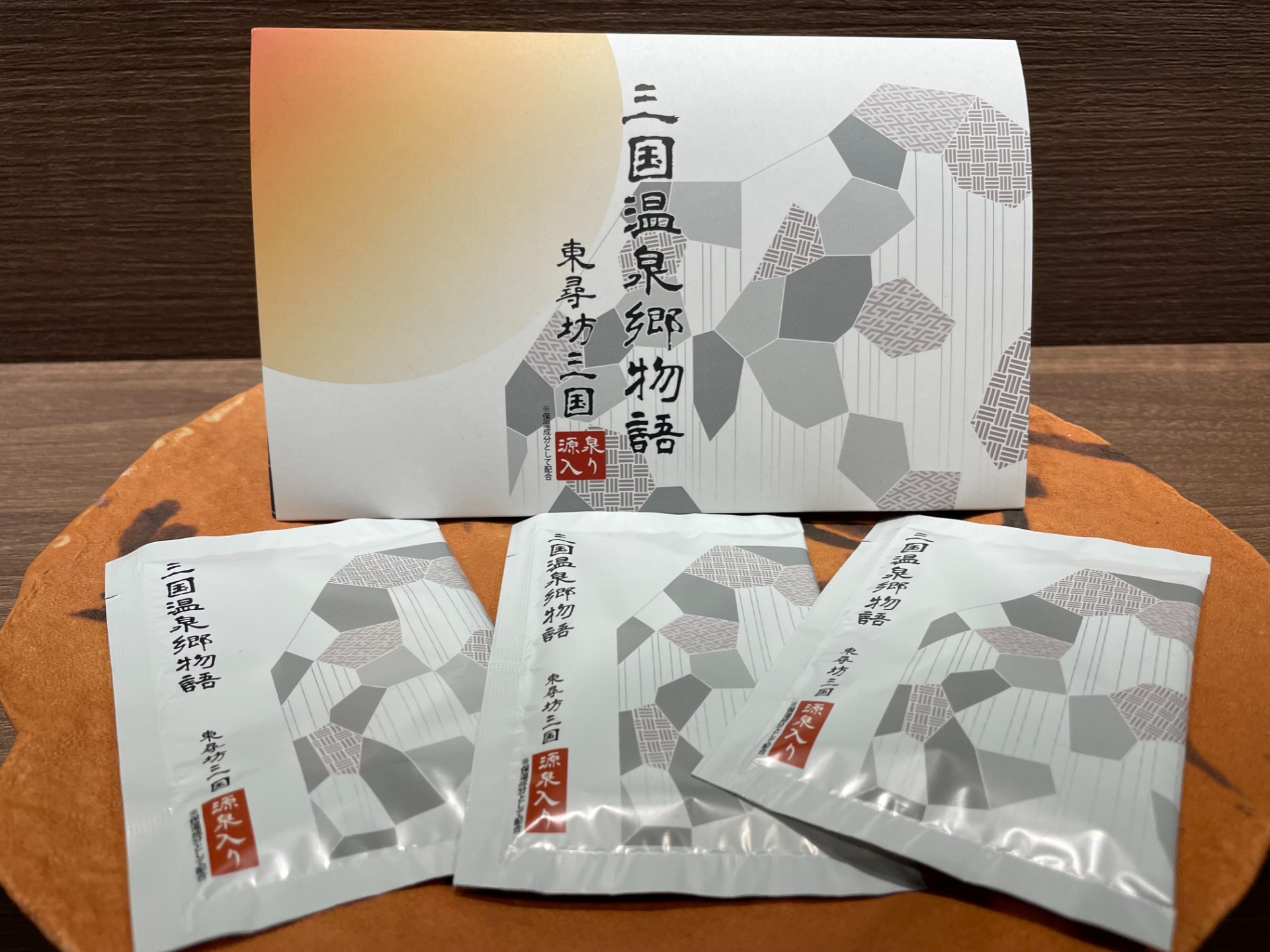 東尋坊三国温泉ゆあぽ~と特典(入浴体験)チケット付プランでご宿泊いただくお客様を対象に先着50名様へ東尋坊バスパウダー 三国温泉郷物語(3点セット)をプレゼントいたします。