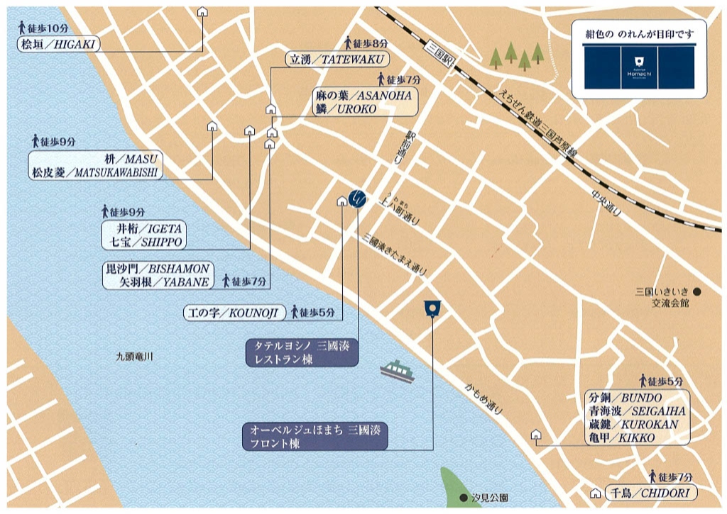 ・チェックイン: 三國湊のメインストリート「三國湊きたまえ通り」にあるフロント棟でお手続きいただきます。