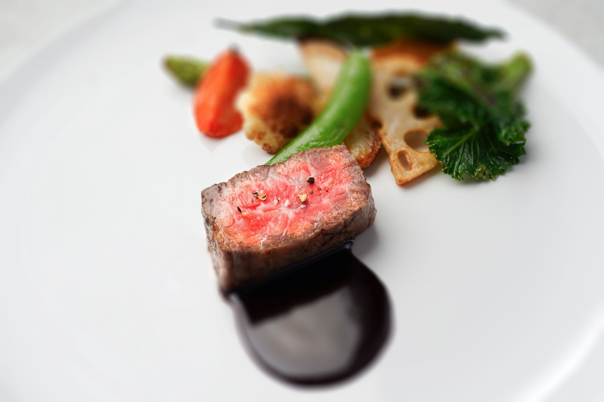 ちりめんキャベツの肉厚さや甘さにフォアグラの濃厚な旨味と黒トリュフの香りのバランスが絶妙に合わさった感動の一皿に仕上がっております。