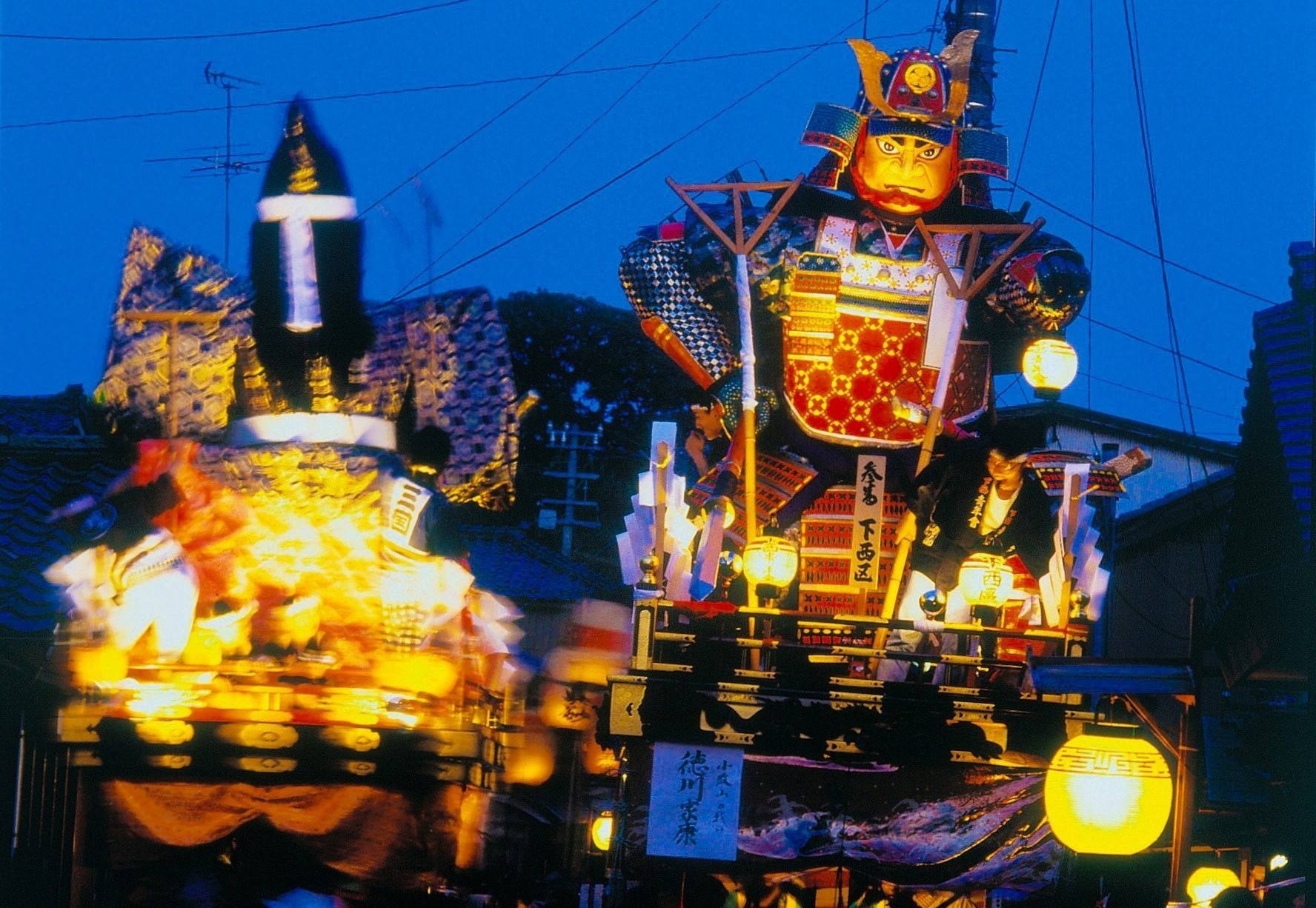 毎年5月19日・20日・21日に開催され、高さ約6.5メートルの豪華な武者人形を乗せた山車が町を巡る姿は圧巻。